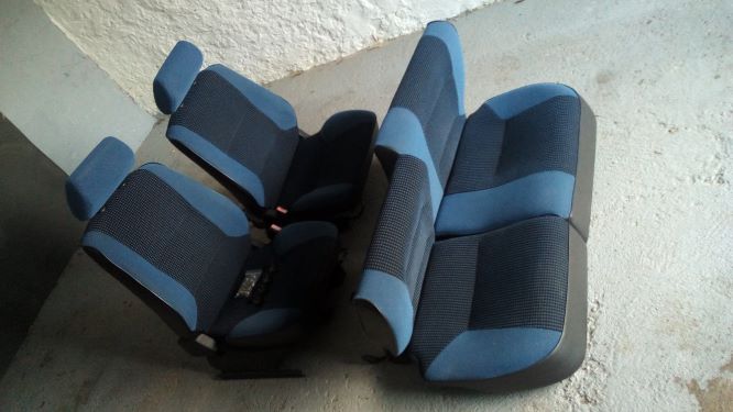 Biete komplette Sitzgarnitur inkl. Türverkleidungen in blau/schwarz
